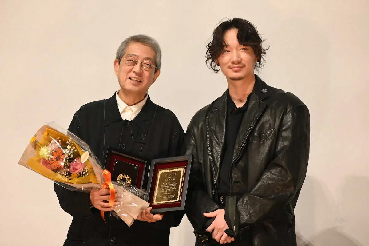 授賞式にサプライズ登場した(右)綾野剛と荒井晴彦監督(撮影・小渕 日向子)
