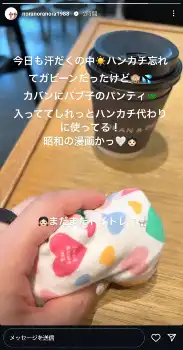 平野はストーリーズで「今日も汗だくの中」とコメント。「ハンカチ忘れてガビーンだったけど」と切り出し、猛暑にも関わらずハンカチを忘れたことを伝えた。