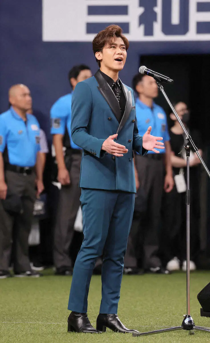 演歌歌手の新浜レオン(28)が9日、京セラドーム大阪で行われた、オリックス―ソフトバンク戦前のセレモニーで国歌独唱を行った。