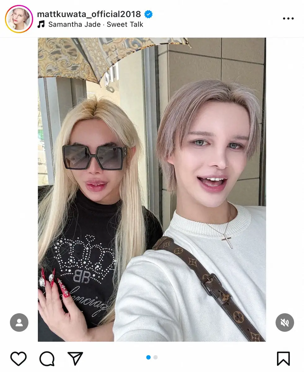 タレントのMatt(29)が10日までに自身のインスタグラムを更新。“整形総額1億円以上”と言われX(旧Twitter)などで話題を呼んでい人気インフルエンサー・アレン様(以下敬称略)とのツーショットを公開した。