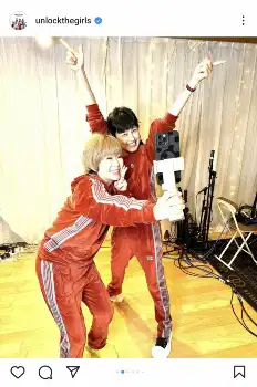 「今日はこんな楽しい日だった」と書き出すと、そろいの赤のジャージに身を包んだ渡瀬と自身が自撮りをする様子をアップ。