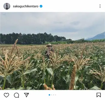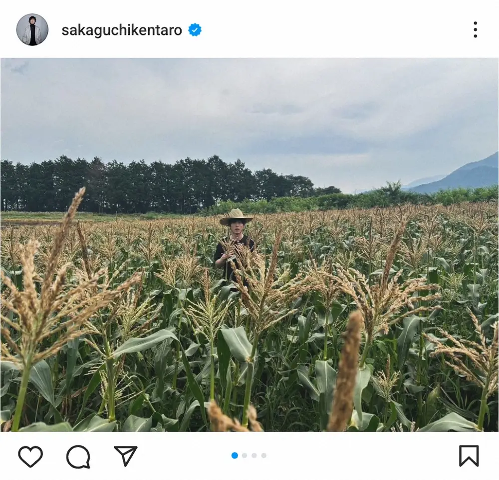 坂口健太郎 とうもろこし畑の“誕生日ショット”に「カールおじさんかと」「お洒落に見えてしまう」の声