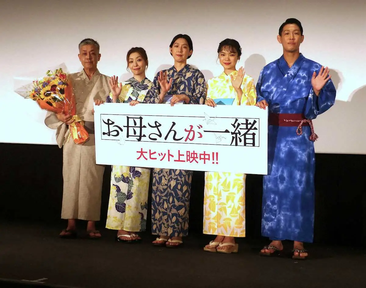 女優の江口のりこ(44)が12日、主演映画「お母さんが一緒」(監督橋口亮輔)の初日舞台あいさつに登壇した。初日を迎えられたことに「うれしく思っています」と安堵(あんど)の表情を浮かべた。