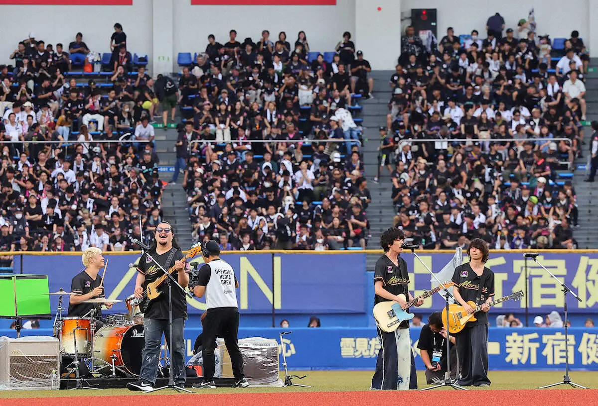 4人組ロックバンド「トンボコープ」が13日、千葉・ZOZOマリンスタジアムで、プロ野球のロッテ―オリックス戦前に特別ライブを開催した。