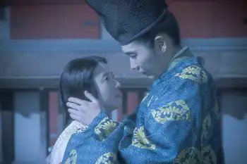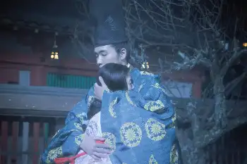 道長は立ち去る。まひろが振り返ると、道長が駆けて下りて戻ってくる。まひろも駆ける。2人は抱擁し、口づけ。一夜を共にした。