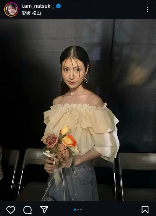 「TGC松山 @tgc_staff ありがとうございました!一年ぶりくらいの愛媛でした @momentplus.officialさんのステージに出演させていただきました!夏らしいオフショルで、ヘルシーなデコルテ見せが可愛いコーデでした」とつづり、大胆にデコルテをのぞかせたオフショルダーのトップスにデニム姿の写真をアップした。