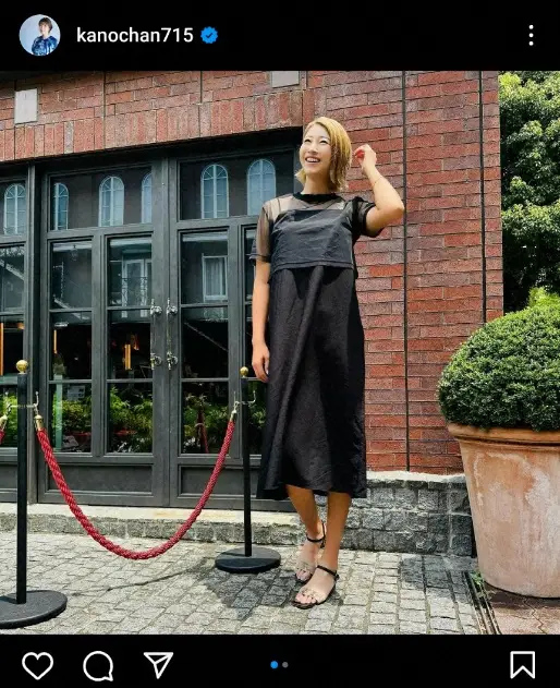 元バレーボール日本代表の狩野舞子さん(35)が15日までに自身のインスタグラムを更新。元バドミントン日本代表がブランドとコラボ製作した黒ワンピ姿を披露した。