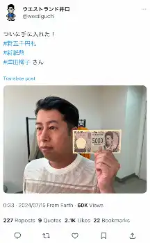 井口本人は3日、新札発行開始のニュースを受け「いよいよ。すぐ手元にくるかなー」と自身のXに投稿しており、ネット上でも「目元や口元がどことなく似ている」「新札のニュースを見た瞬間思った」など話題となっていた。