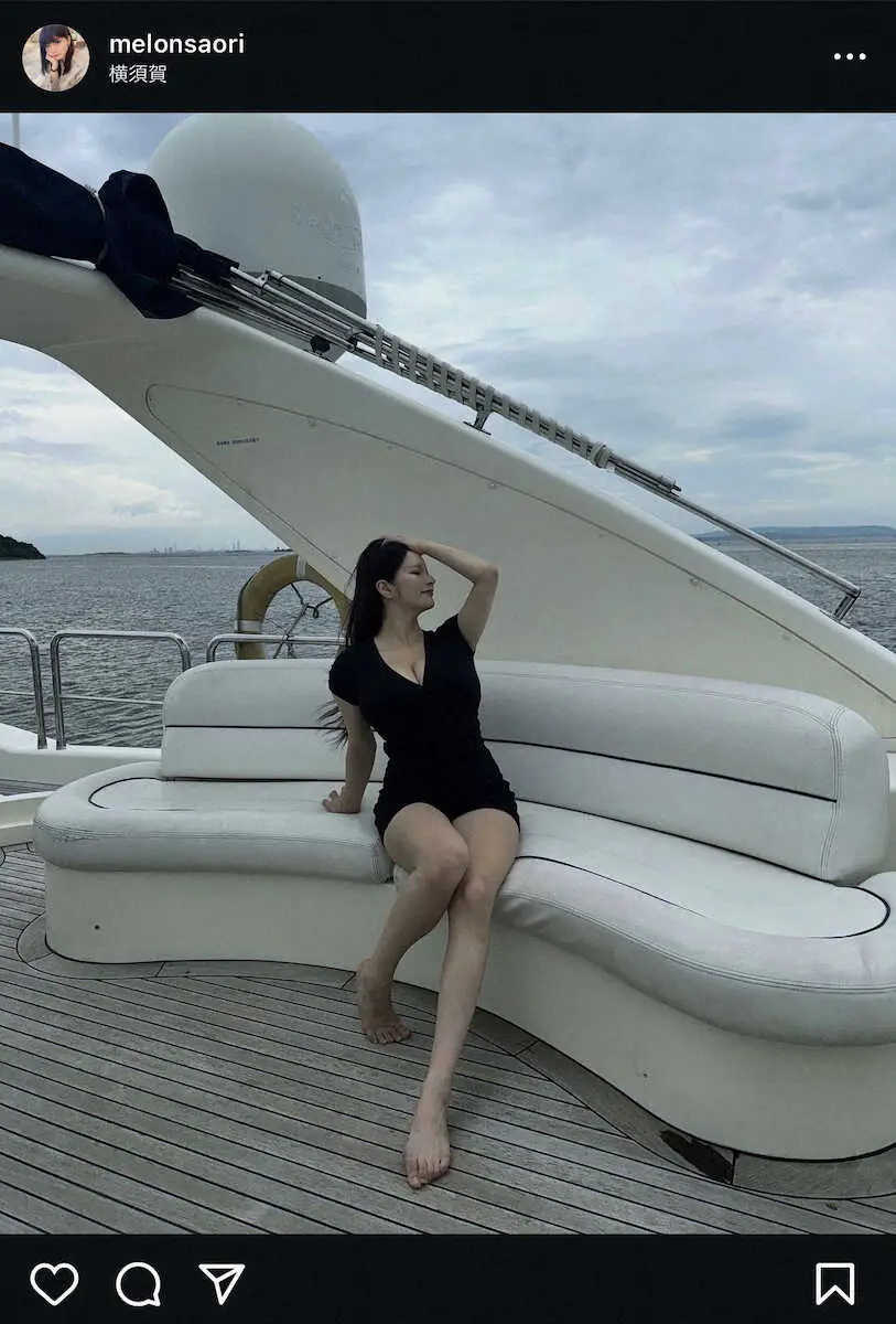 フリーランストレーナーでモデル、ラウンドガールとして活動するSAORIが15日までに自身のインスタグラムを更新。タイトな黒ミニワンピース姿でクルージングを楽しむ様子を投稿した。