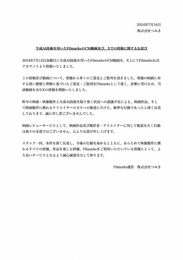 Filmarks(フィルマークス) 映画レビューサイト「Filmarks」 AI使用のCM映像に批判殺到 削除&謝罪… ギャラリーで見る この記事のフォト 2024年07月16日の画像一覧 もっと見る 2024年07月16日の画像をもっと見る