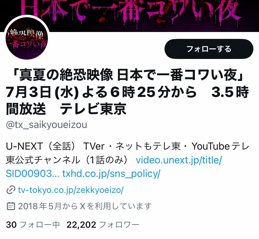 テレビ東京外観 Photo by 提供写真 テレ東「真夏の絶恐映像 日本で一番コワい夜」 番組内容を謝罪 「許諾… ギャラリーで見る この記事のフォト 2024年07月16日の画像一覧 もっと見る 2024年07月16日の画像をもっと見る