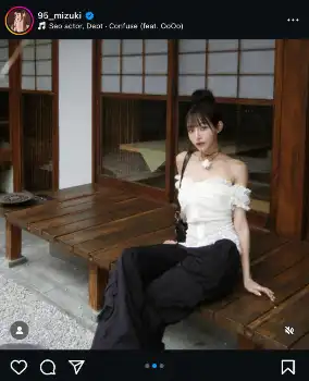 自身のインスタグラムでは泡と水色のハートマークとともに、縁側でのお団子ヘアーでフリルが付いた白のチューブトップファッションを投稿した。