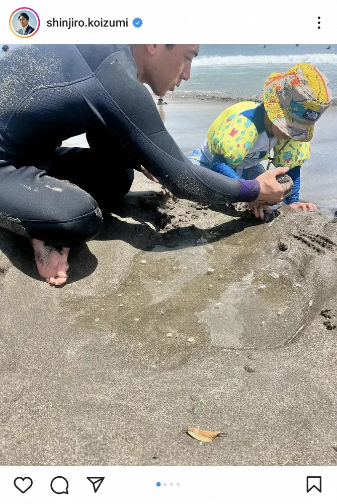 自民党の小泉進次郎衆院議員(43)が16日までに自身のインスタグラムを更新。4歳長男と海遊びを楽しむショットを披露した。