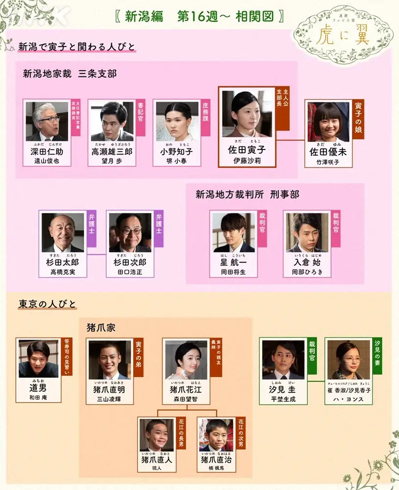 NHK連続テレビ小説「虎に翼」第16週の人物相関図(番組公式サイトから)