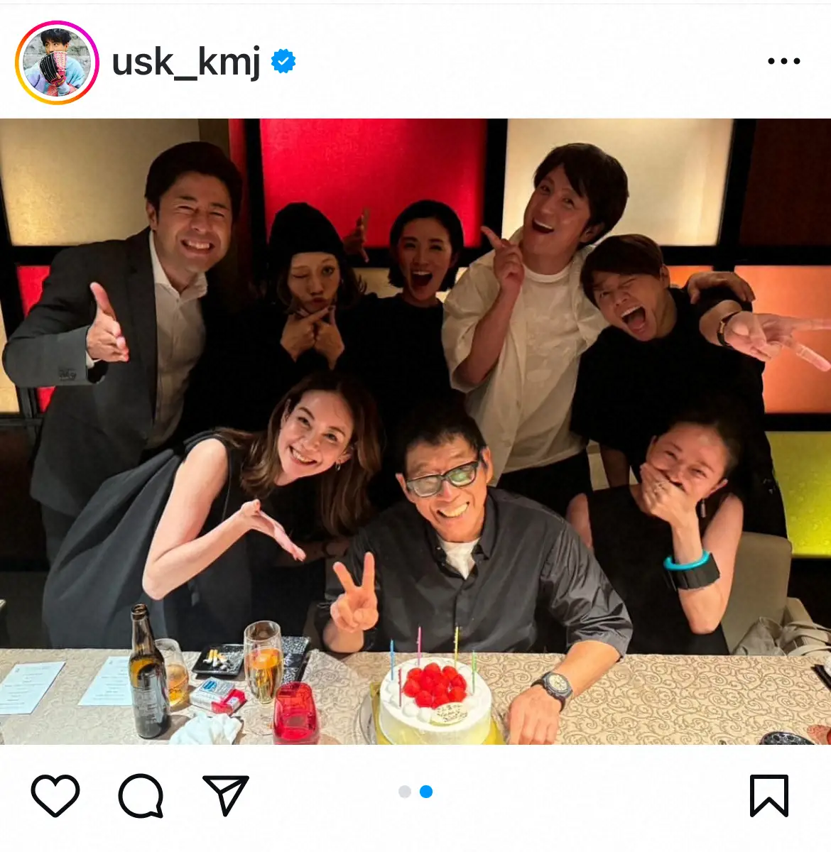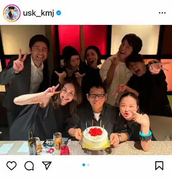 俳優の上地雄輔(45)が18日までに自身のSNSを更新。フジテレビ「あっぱれ!!さんま新教授」の“同窓会”で明石家さんまの69歳の誕生日を祝ったことを報告した。