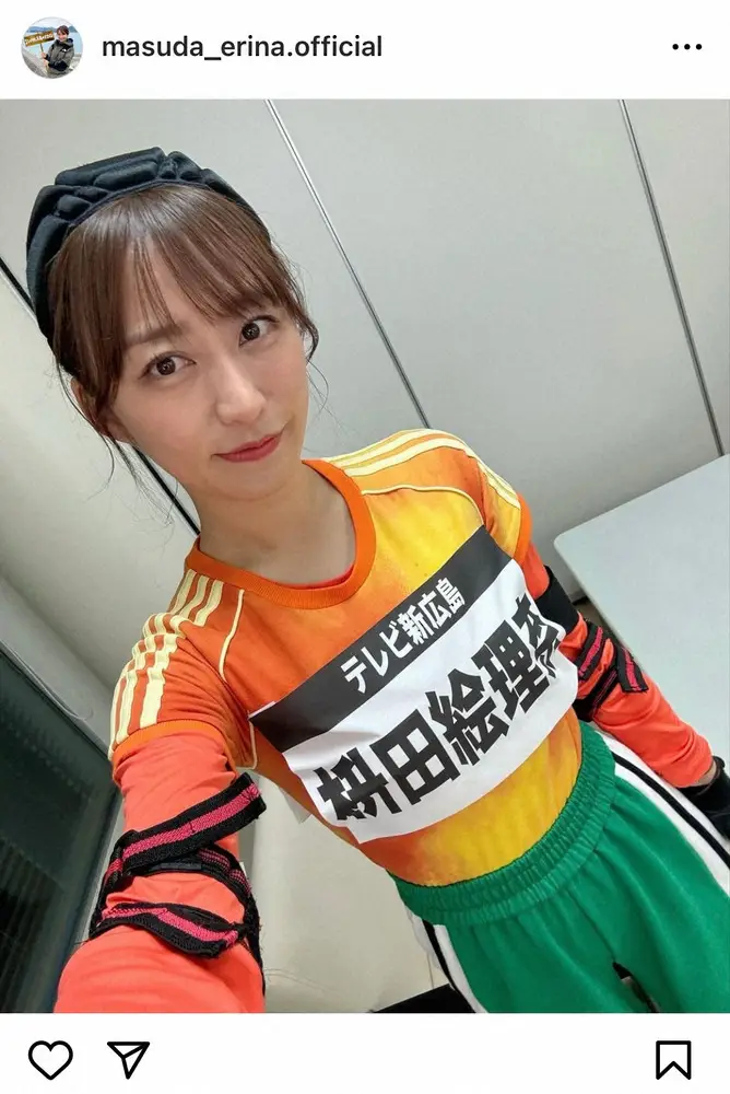 番組について「47都道府県代表が集まる今回の逃走中 私はtss代表として出てきました 7/21の朝7時ごろから放送予定です」と告知し、「テレビ新広島 枡田絵理奈」とスポーツウェア姿の自撮りを披露した。