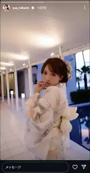 SKE48の元メンバーでタレントの三上悠亜(30)が18日までに自身のインスタグラムのストーリーズを更新し、浴衣姿の見返りショットなどを披露した。