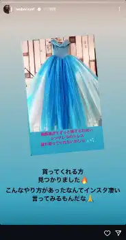 岩堀はストーリーズで「素敵すぎてずっと捨てられないシンデレラのドレス」と切り出し、「誰か貰ってくれないかしら」と、ハンガーに掛けられた青いドレスの写真を公開した。