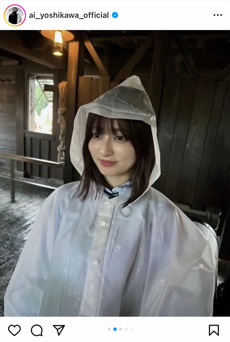 女優の吉川愛(24)が19日、自身のインスタグラムを更新。カッパ姿のディズニー・ショットを披露した。