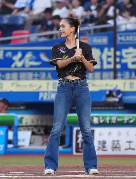 元E-girls・佐藤晴美&松田龍平の妻・モーガン茉愛羅が始球式 ヘソ出し&抜群スタイルで魅了