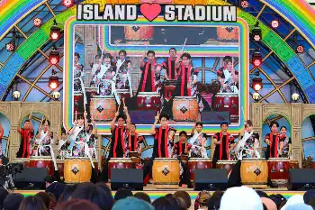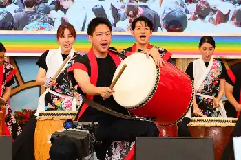 生田竜聖アナと男性アナウンサー中心に結成した和太鼓チーム「フジアナ TAIKO 魂」に今年は堤礼実アナ、杉原千尋アナら女性アナウンサーも参戦。21人のメンバーがステージに登場すると「うわー!」「可愛い~」と女性アナの華やかさに観客は目を輝かせた。アナウンサーが額から汗を垂らしながら、晴れやかな笑顔で圧巻のパフォーマンスを披露すると、会場のボルテージも一気に上昇。夏日に迫る暑さに負けない“大和魂”で観客を圧倒した。