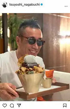 大きなスイーツを持つ笑顔のショットを投稿。「しかし、この国の人たちは、優しいな!! そして食に溢れ 活気に満ちている。街も東京より凄いぞ!!」と記した。