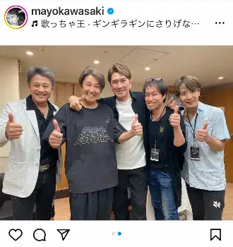 川崎麻世のインスタグラム(@mayokawasaki)より左から中村繁之、近藤真彦、川崎、山本純一、佐藤寛之 川崎麻世 「俺たちはいつまでもJの魂は消えない」後輩たちとの豪華ショッ… ギャラリーで見る この記事のフォト 2024年07月22日の画像一覧 もっと見る 2024年07月22日の画像をもっと見る