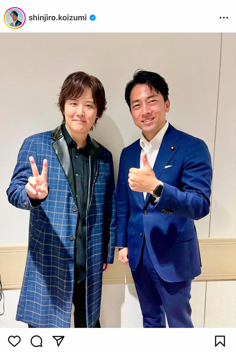 自民党の小泉進次郎衆院議員(43)が22日、自身のインスタグラムを更新。人気歌手との2ショットを公開した。