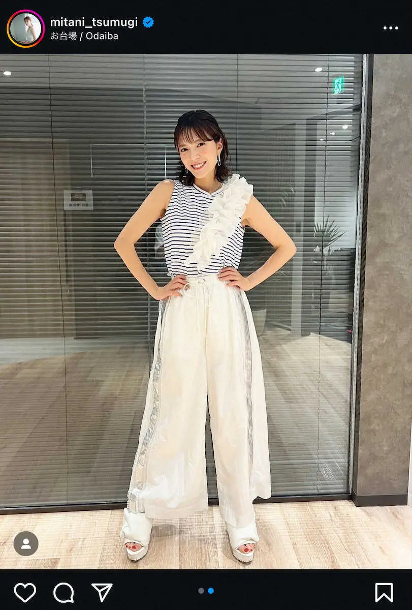 テレビ朝日の三谷紬アナウンサー(30)が22日に自身のインスタグラムを更新。ボーダーのノースリーブ姿を投稿した。