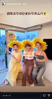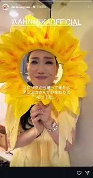 アンミカはストーリーズで「四年ぶりのひまわりホムパ」とコメント。夫で実業家の実業家のセオドール・ミラー氏らと共に、ひまわりのかぶり物を身につけた姿を公開した。