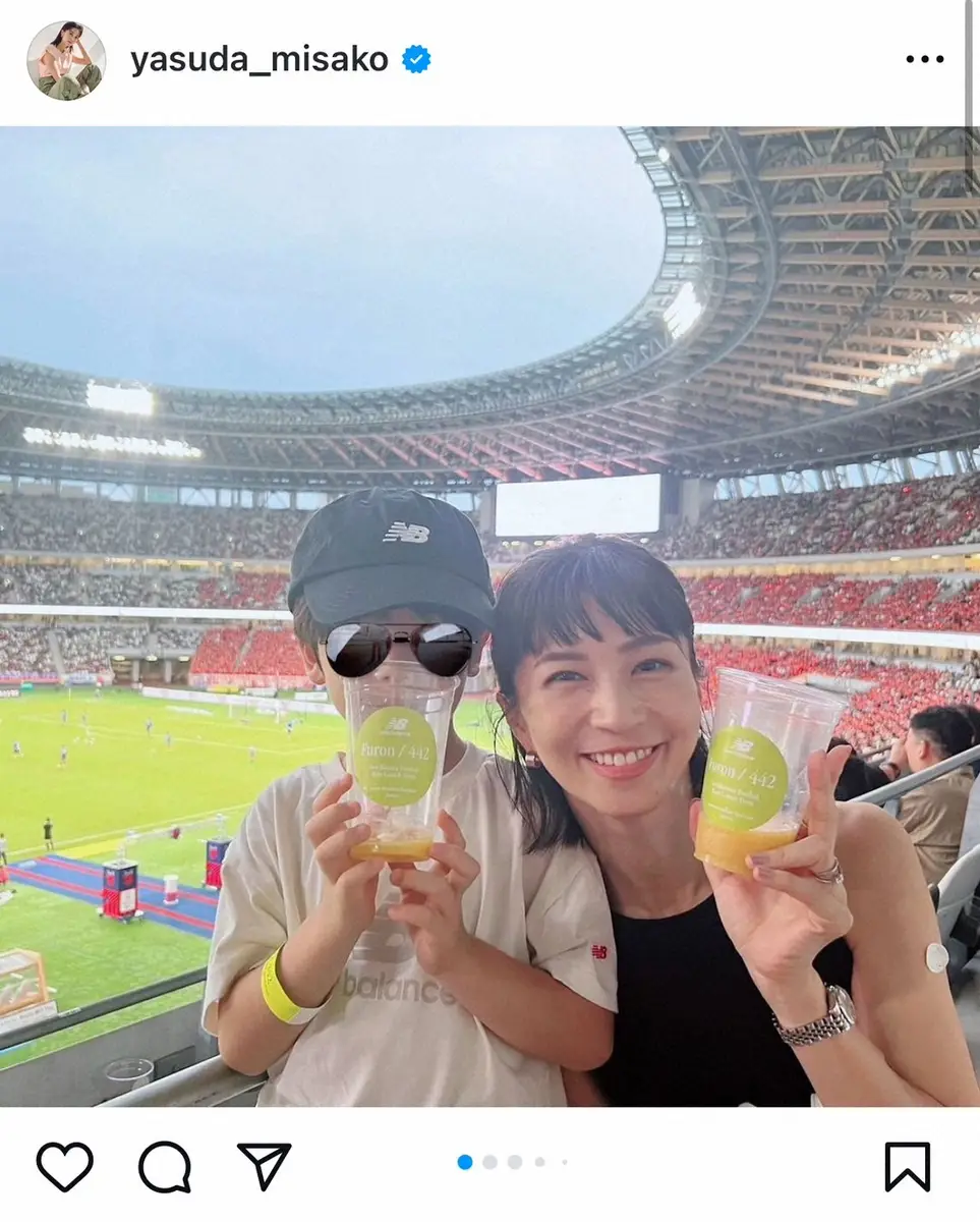 二児の母でもある安田は「少し前の、家族でサッカー観戦」と書き出すと「男子家族だなぁ。。。」とつぶやいた。