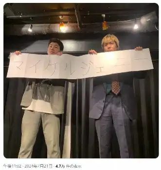藤井は「ご報告 この度、フライドポテトは『マイケルジェニー』に改名しました」と、コンビ名の変更を発表。