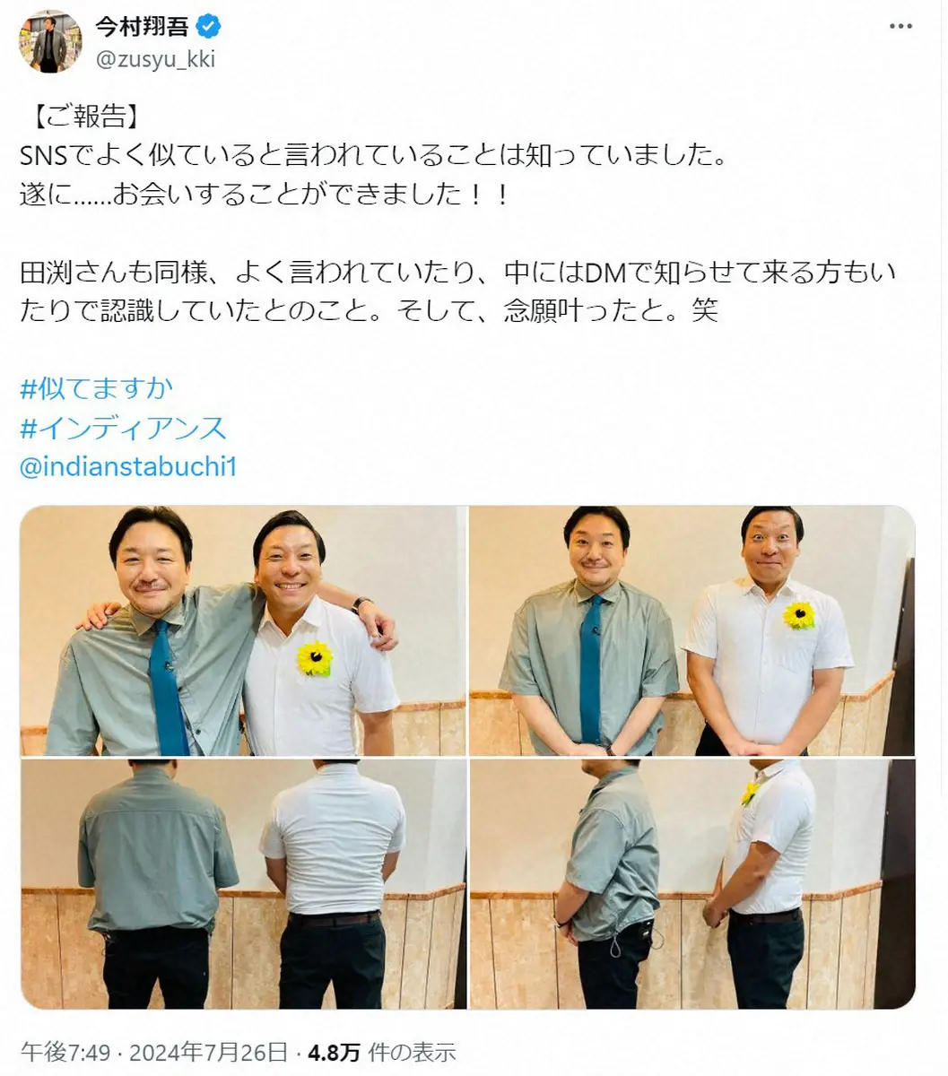 今村翔吾氏 Photo by スポニチ 直木賞作家 「よく似ていると言われている」人気芸人とついに対面「似て… ギャラリーで見る この記事のフォト 2024年07月27日の画像一覧 もっと見る 2024年07月27日の画像をもっと見る
