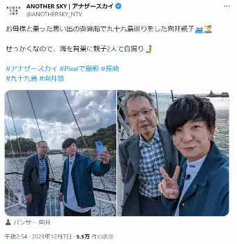取材を行ったMCの「Kis―My―Ft2」藤ヶ谷太輔が向井の父から聞いた話として「向井さんとご飯を食べた時に、仕事の話をすることがあると。で向井さんが今の芸能界の自分のポジションに悩んでいる話とか」と証言すると、向井は「きよし!言うなよ!」と照れたように話した。