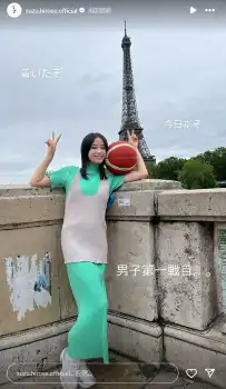 広瀬すず 「着いたぞ」パリ到着を報告 エッフェル塔の前で、バスケットボール手にピース