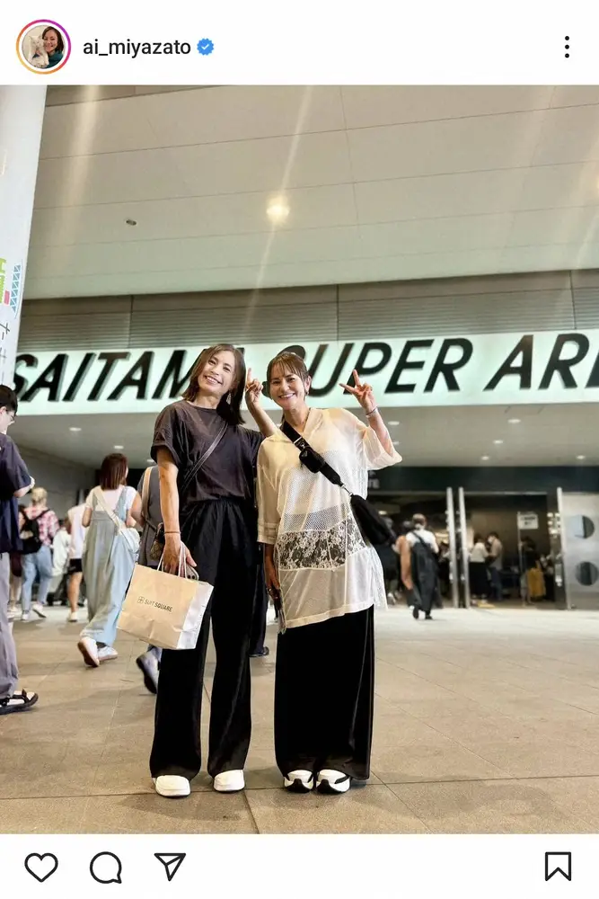女子ゴルフの元世界ランキング1位で17年に引退した宮里藍さん(39)が28日、自身のインスタグラムを更新。サッカー元女子日本代表で今季限りで現役を引退した鮫島彩さん(37)とコンサートに出かけたことを報告した。