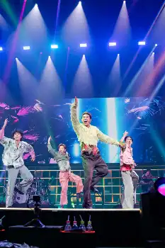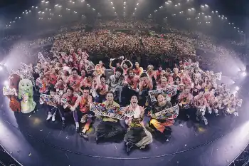 桃からダンスマシンが生まれた。ステージ上に登場した四つの桃から4人が勢いよく飛び出し、「s**t kingz ももたろうダンサーズ」とともに、曲の歌詞や音を表情や細やかな動きで表現するダンスで会場のボルテージを引き上げた。Oguri(37)は「横浜一、日本一、地球一暑い場所にしようぜ!」と叫び、26日に開幕したパリ五輪に負けない熱が会場を包み込んだ。