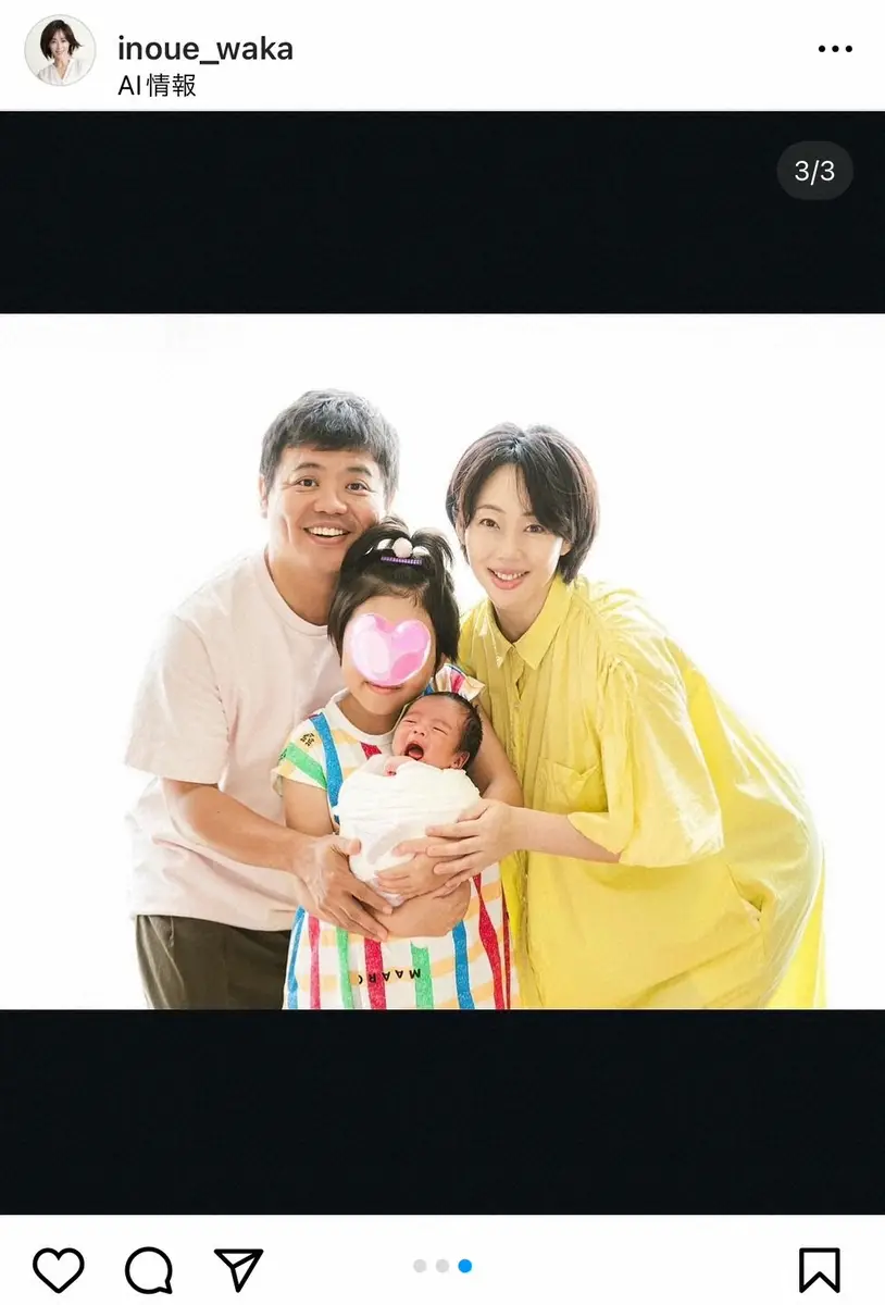 第2子を出産したばかりの女優・井上和香(44)が30日、自身のインスタグラムを更新。ニューボーンフォト&家族ショットを披露した。