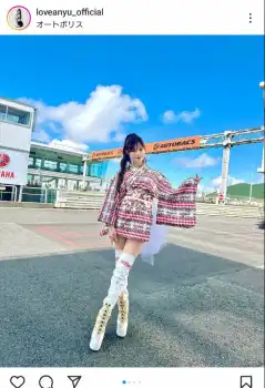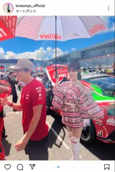 「浴衣コス お披露目~」などとつづり、オートポリス・サーキットでのミニ浴衣コスチューム姿の写真をアップした。