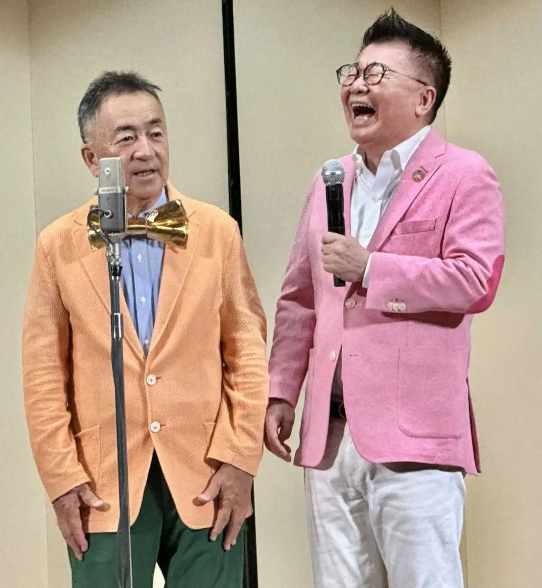 生島ヒロシ せんだみつおと“即席漫才”披露 「100点満点の90点です」