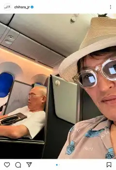 この日ジュニアは「隣で坊主が寝てた」とコメント。移動中の隣の座席でぐっすりと眠るせいじの姿を公開した。