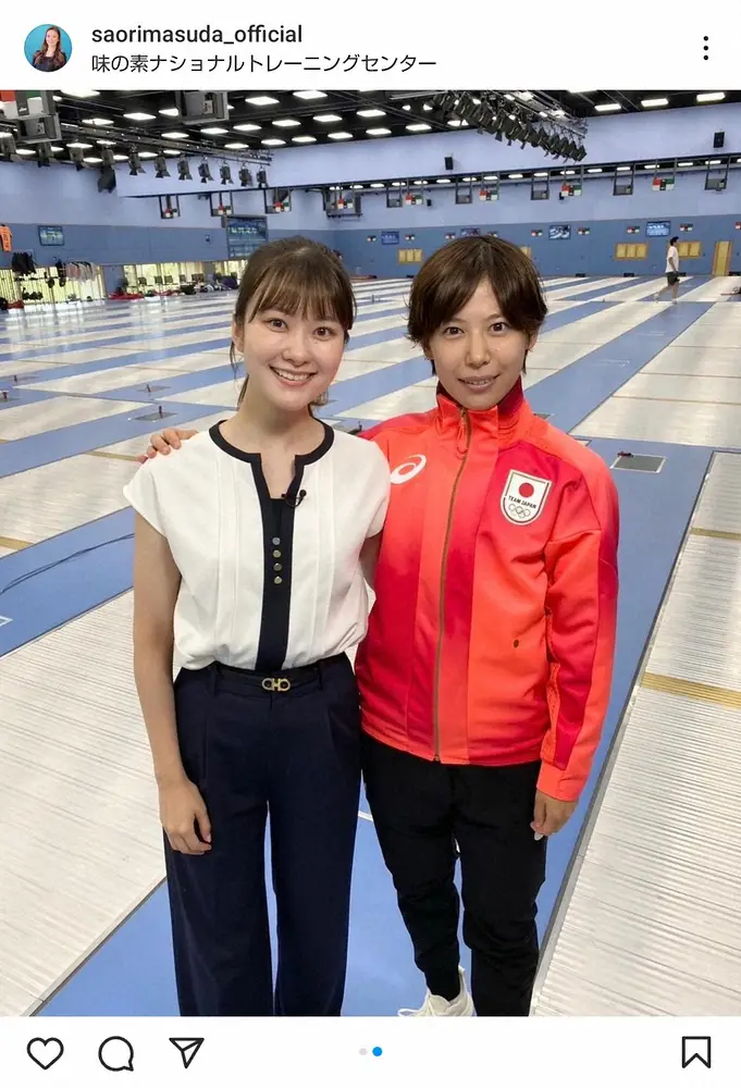 増田アナはストーリーズで「フェンシング女子フルーレ団体日本代表銅メダル獲得おめでとうございます!」と祝福。「かっこよかったです!本当におめでとうございます!かりんお疲れ様」と、宮脇との2ショット写真を添えた。