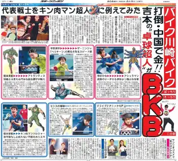 バイク川崎バイクが卓球日本代表にエール 打倒・中国で金!! 代表戦士をキン肉マン超人に例えてみた