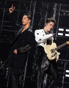 中国の人気歌唱リアリティ番組「Call Me by Fire」で特別ユニットを結成したEXILE・AKIRA(右)とMIYAVI