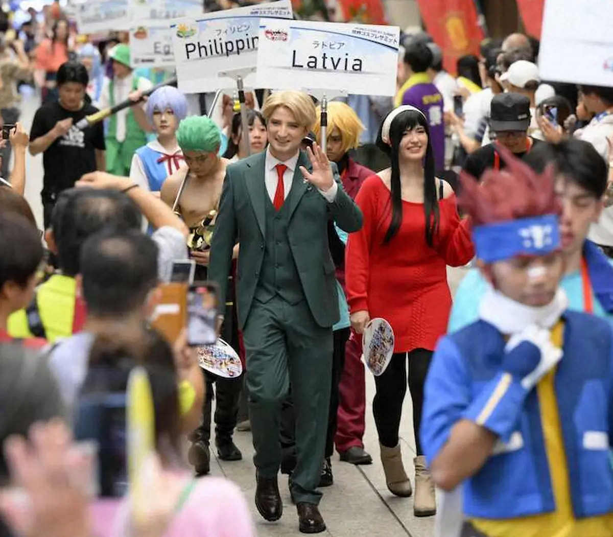 漫画やアニメのキャラクターの衣装を身に着けたコスプレーヤー約1000人が4日、名古屋市の大須商店街をパレードした。
