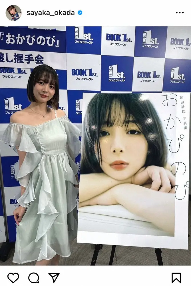 4日、都内で写真集「おかぴのぴ」(小学館)の発売記念イベントを行った岡田は「今日は #おかぴのぴお渡し握手会に来てくださまた皆様、本当にありがとうございました」とコメントし、会場内で大きな写真集表紙のボードと並んだ姿を披露。