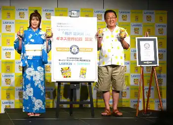 今回のコラボレーションの「架け橋」にちなみ、“1分間で箸をつかって移動したレモンの最多数”のギネス世界記録に挑戦。「一点集中すれば必ず勝ち取ることができると思いますので頑張ってください」という吉田さんの助言と声援を後押しに、見事成功を納めた。