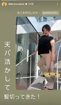 お笑いコンビ「フォーリンラブ」のバービー(40)が4日、自身のインスタグラムのストーリーズを更新。第1子の出産を控え髪を切ったことを報告した。
