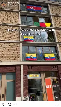 サビルは「選手村の建物を巡ろう」と題した動画を投稿。自転車に乗りながら各国の棟を見て回った。まず初めに「北朝鮮の棟を発見。エクアドル代表とシェアしている様子」とつづった。またオランダの棟には「自転車大国」らしく自前のオレンジ色の自転車が多く止まっている。
