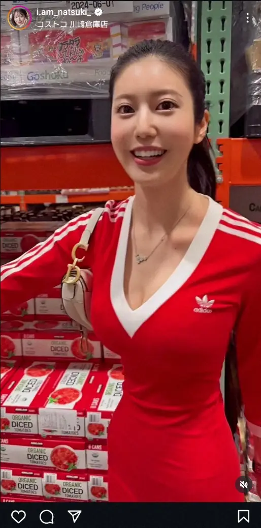 「トマト アディダスのワンピースかわいい」などとつづり、コストコでショッピングしているショットをアップした。
